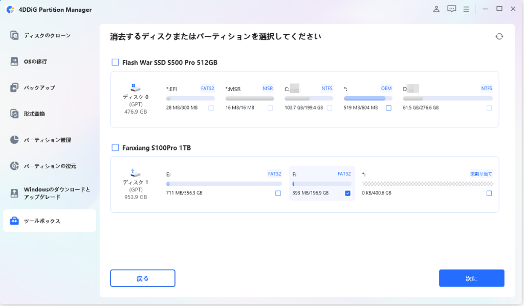 実際に4DDiG Partition ManagerでHDDデータを完全に消去する手順を見ていきましょう。操作はとても簡単で、初めてでも数ステップで完了します。