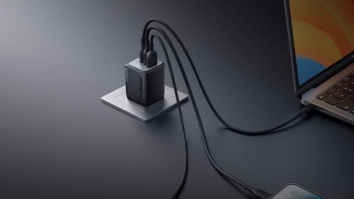 3ポートある合計で65Wまで出力可能な充電器のため、接続機種にもよりますが複数機器を接続していてもそれぞれで急速充電が可能になります。