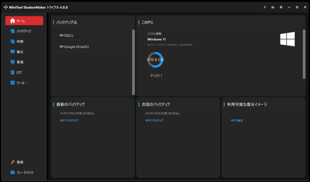 MiniTool ShadowMaker は、Windows向けのバックアップ / ディスククローン / データ保護ツールです。
