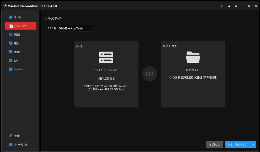 無料版でも基本的なバックアップ/復元/クローン機能が揃っており、わりとライトな用途でも安心して使えると思います。