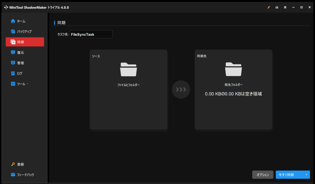 ファイルやフォルダを指定先のフォルダと同期してデータを保護することが可能です。こちらも同期のスケジュール設定が可能なので、定期的に行いたい場合にはスケジュール設定をおススメします。