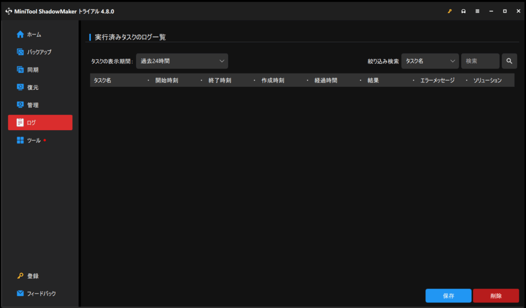 バックアップや同期は重要なデータであれば、スケジュールを決めて定期的に実施すると思います。その実行結果はログ一覧として確認することができるため、もしバックアップの失敗などが起こっていた場合にも、ログを確認するすれば気付くことができます。